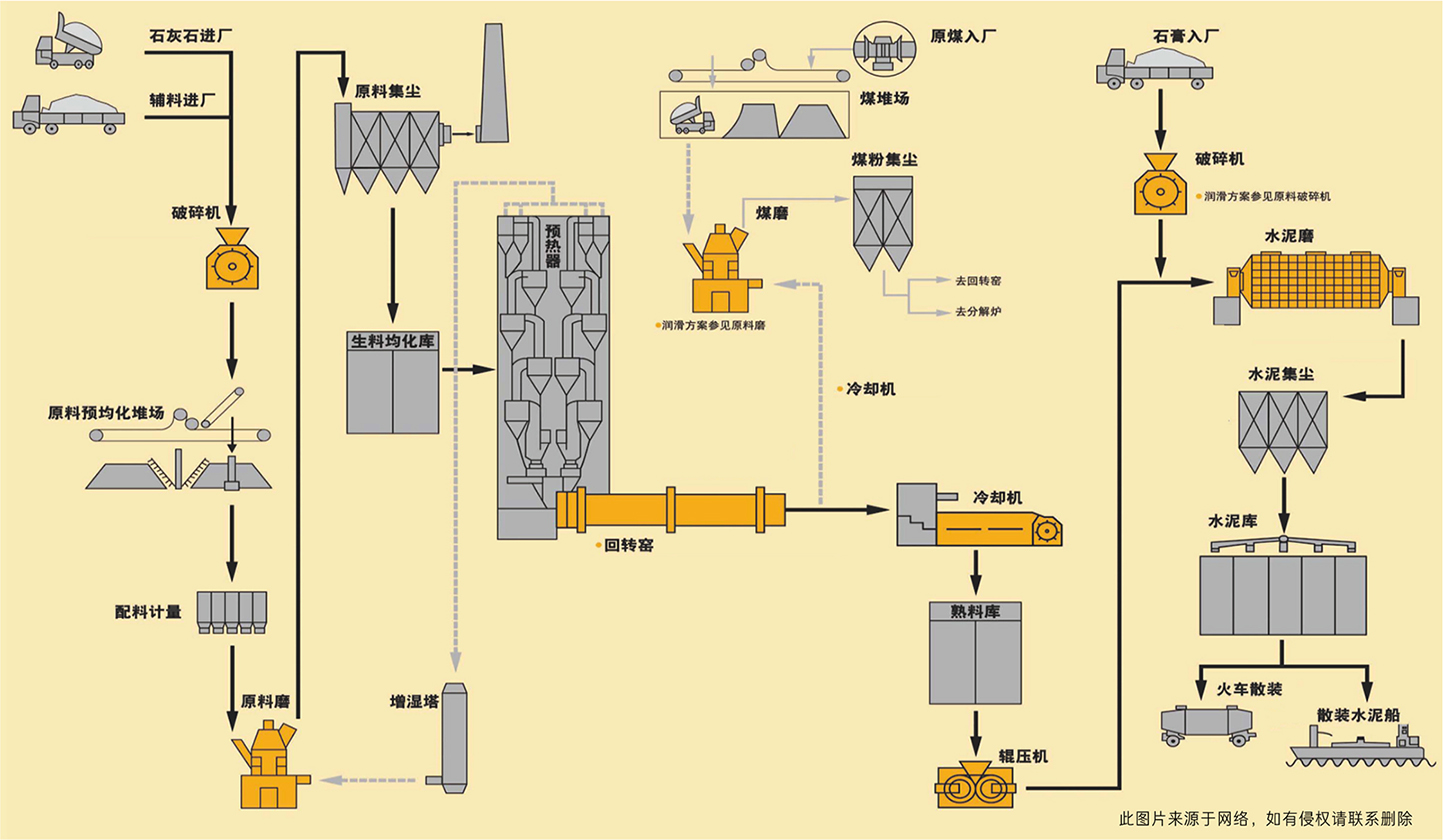 新型干法水泥生產工藝典型流程圖